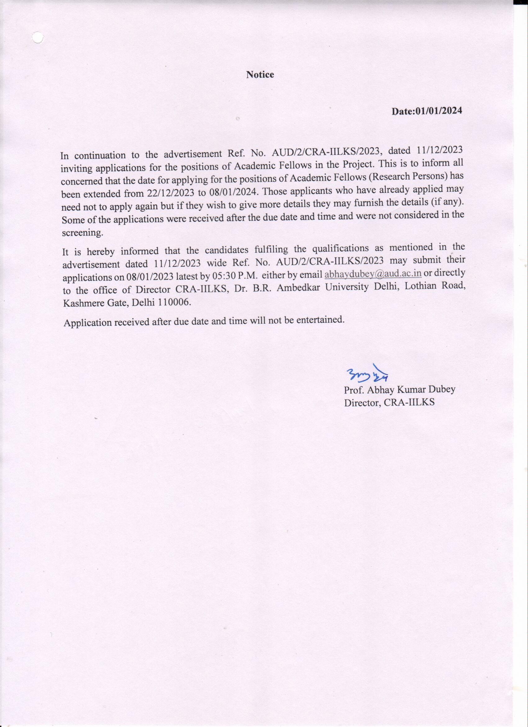 Advt. No. AUD/11/Acad/2024 |