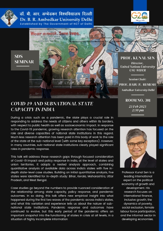 SDS Seminar by Prof. Kunal Sen, Director, UNU-WIDER: COVID-19 and Sub-national State Capacity in India.