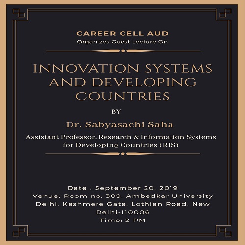 We would like to invite you to a speaker session on "Innovation Systems and Developing Countries" by Sabyasachi Saha PhD(JNU), Assistant Professor, Research & Information System for Developing Countries (RIS).